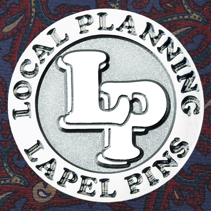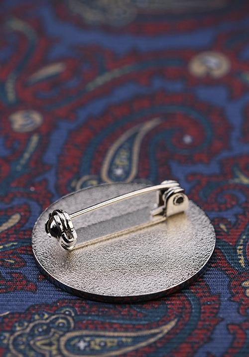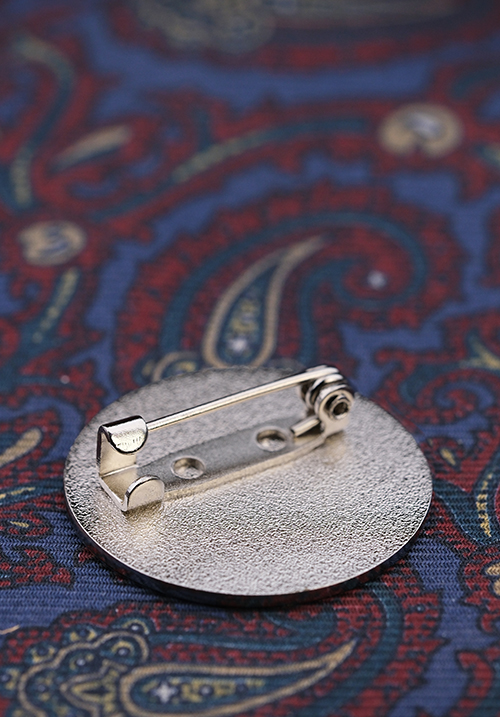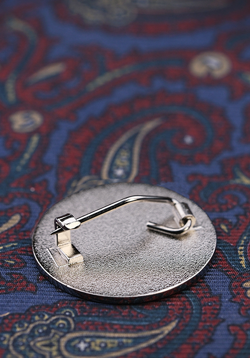光沢のあるシルバー調のメッキ。「銀メッキ」もしくは「シルバーメッキ」と言えばこのニッケルメッキと考えて差し支えありません。ニッケルメッキは装飾品のメッキに向いています。なおこのバッジは凹部にザラザラした砂面加工(サンドブラスト加工)を施しているので、メッキの光沢感が抑えられ、凹凸にメリハリが生まれ、立体感を強調することができます。