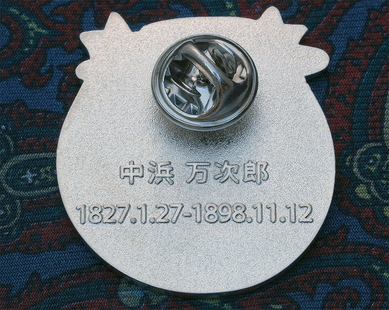 ピンバッジの裏面に文字やロゴ・通し番号を入れることができます。画像は砂面加工を施した裏面に凸の文字を刻印しています。刻印は凸でも凹でも作成できます。刻印の方法はこの他にレーザー刻印があり、また刻印ではなくシルク印刷を用いることも可能です。