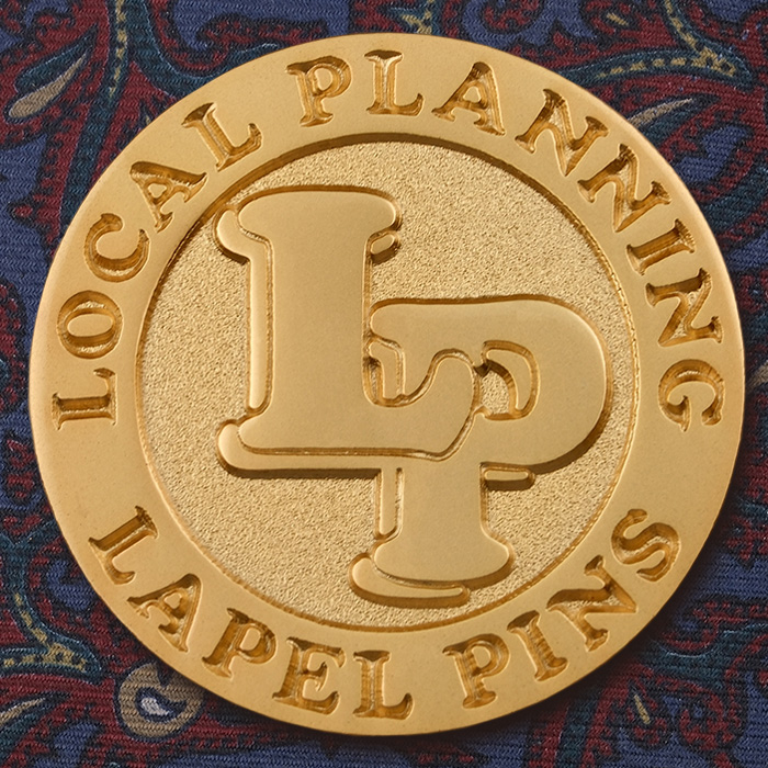 光沢のあるゴールドメッキを凸部に施しています。なおこのバッジは凹部にザラザラした砂面加工(サンドブラスト加工)を施しているので、メッキの光沢感が抑えられ、凹凸にメリハリが生まれ、立体感を強調することができます。