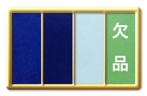 七宝焼は使用できる色調が120色、このうち10色が現在欠品中です。