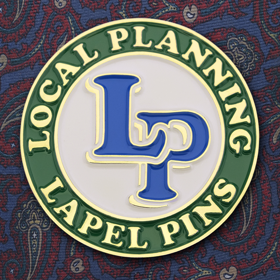金属板に圧力をかけて凹凸をつけ、凹部にエナメル塗料を流し込んで作成します。エナメル塗料(ソフトエナメル)は皮膜が薄いため、塗装部分はくぼみます。左の画像をご覧下さい。緑色部分がくぼんでいるのがお分かりでしょうか。製作料は安価、ノベルティグッズやイベントなどの配布用などに向いています。